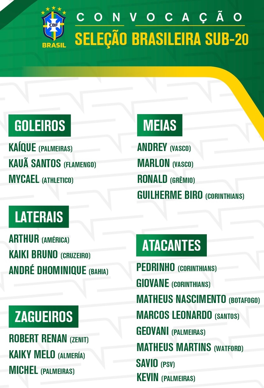 O Mundial Sub-20 acontece a partir do dia 20 de junho, na Argentina. O Brasil está no Grupo D do Mundial Sub-20, com Itália, Nigéria e República Dominicana. Os convocados vão se apresentar no dia 8 de maio para iniciar os treinamentos.